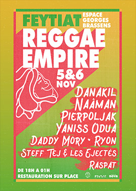Après le succès des deux premières éditions, le Reggae Empire Festival annonce son retour pour le Vendredi 5et le Samedi 6 novembre 2021. Une manifestation qui garde son esprit de communion autour du reggae qui puise son énergie de ses racines caribéennes. Cette année encore on vous fait la promesse de vous proposer un événement convivial, à taille humaine et on vous garantit une soirée bonnes vibes !!