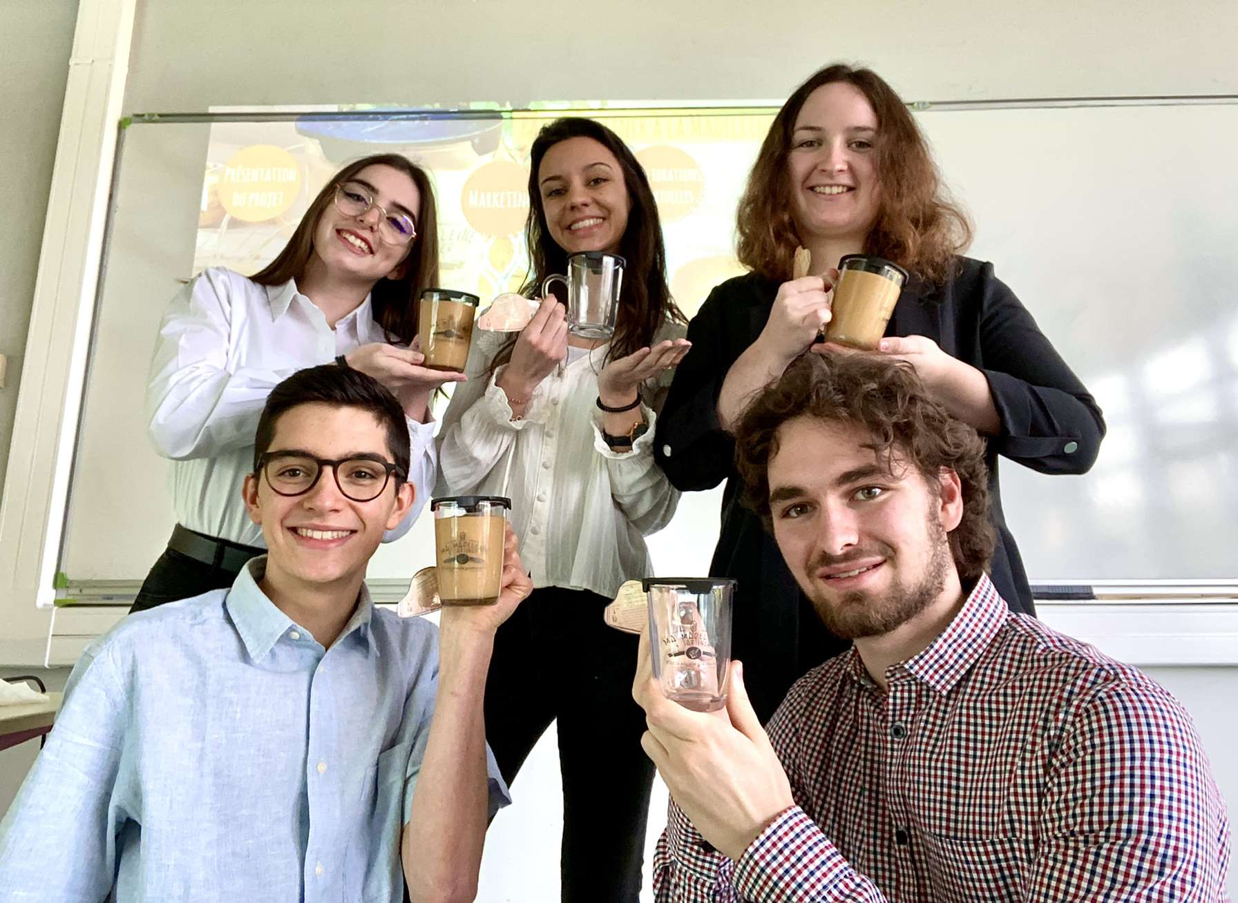 Une création de 5 étudiants en DUT Génie Biologique option Industries Agroalimentaires et Biologiques à l’IUT du Limousin : Léa PALLEAUX, Flore QUINIOU, Camille ROBIN, Emilien PICHONNAUD, Loïc REGNIER. Lors de leur 2e année de DUT ils ont réalisé un projet tutoré qui avait pour objectif l’élaboration d’un produit agroalimentaire, cosmétique ou biologique. L’idée du produit leur est venue simplement : la madeleine est un souvenir de notre enfance que nous adorons et la pâte à tartiner est un produit consommé très fréquemment. Ils ont alors eu l’idée de confectionner une pâte à tartiner à la madeleine. Ils voulaient que celle-ci soit antigaspi, locale et respectueuse de l’environnement. Ils souhaitaient aussi participer au concours régional de créativité et d’innovation agroalimentaire, organisé par le Pôle Aliments & Santé à La Rochelle.