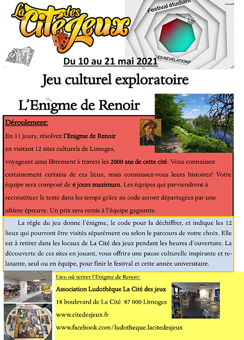 « La Cité des jeux » propose aux étudiants de l’université de prendre un peu l’air en résolvant « L’Enigme de Renoir », tout en explorant l’histoire de Limoges.