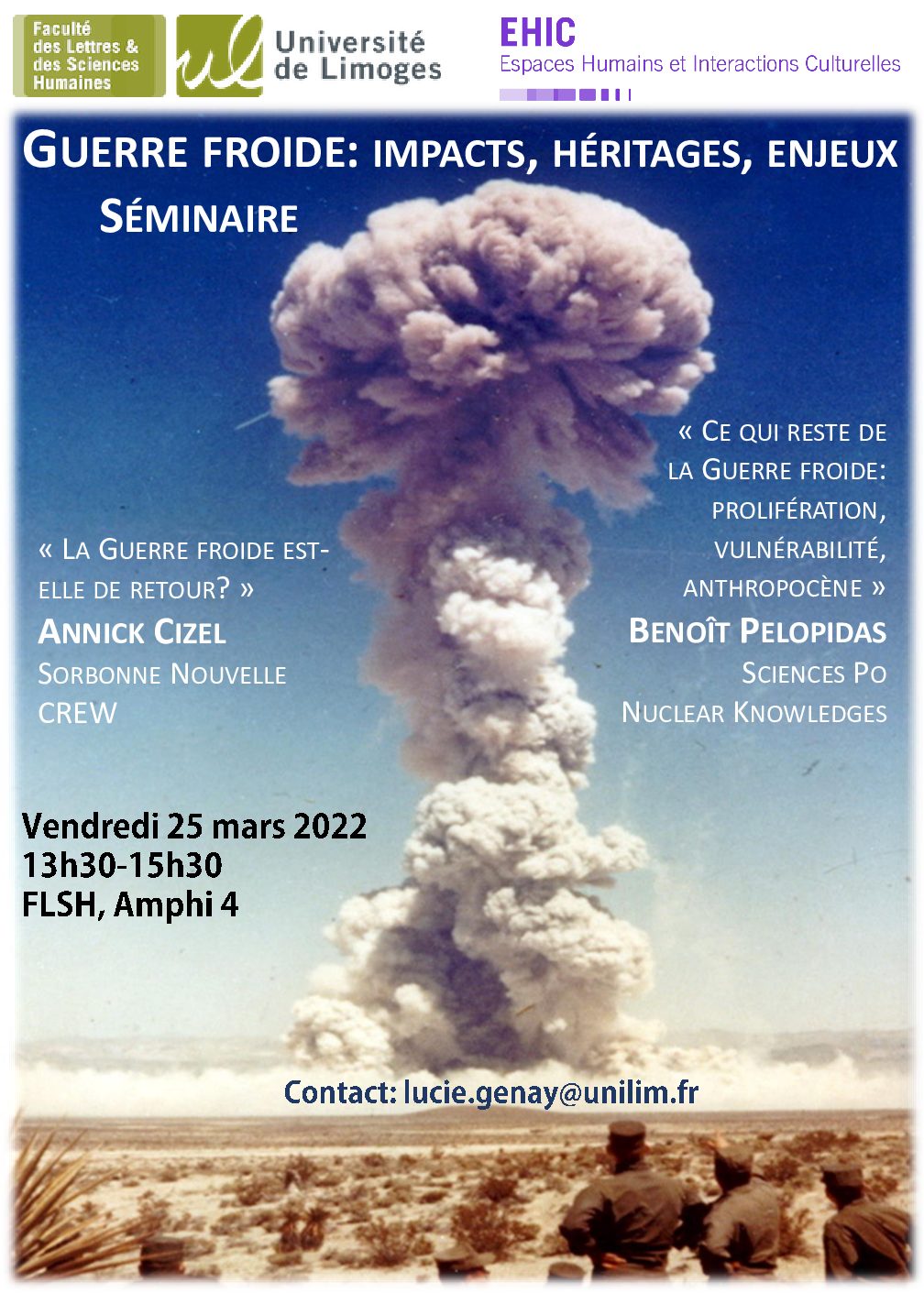 - Benoît Pelopidas (Sciences Po), fondateur du programme d’étude des savoirs nucléaires Nuclear Knowledges au CERI (Centre de Recherches Internationales de Sciences Po) « Ce qui reste de la Guerre froide: prolifération, vulnérabilité, anthropocène.«