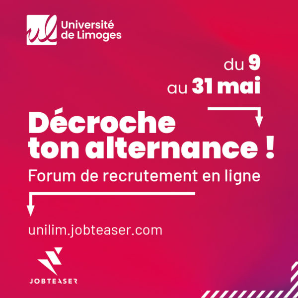 L’Université de Limoges se mobilise et recueille pour des offres d’alternance de la part d’entreprises et structures de notre territoire dans le cadre de son Forum de l’alternance.