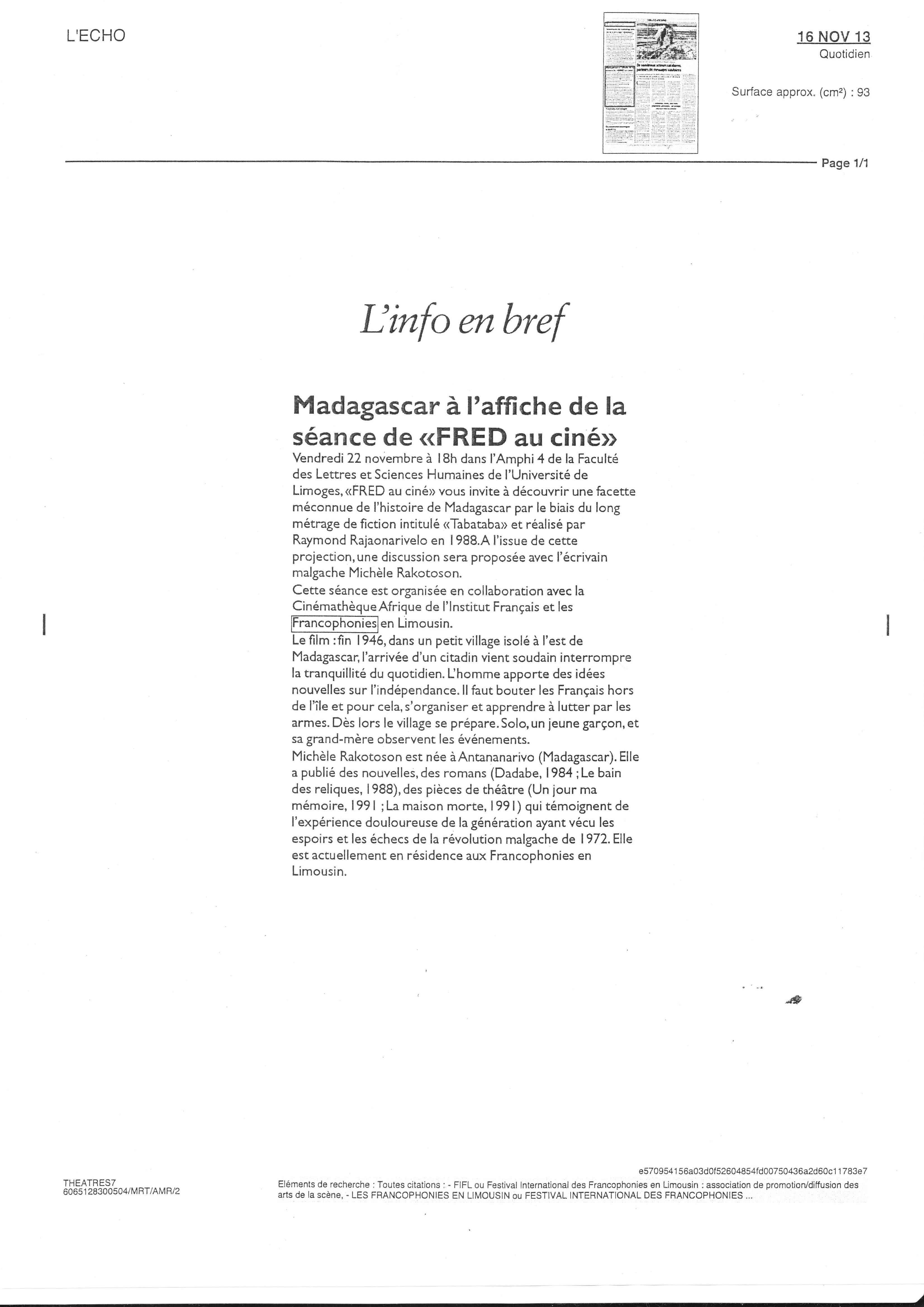 Fred dans la presse Fred dans la presse Téléchargez l’article du Populaire du 8 novembre 2013 Téléchargez l’article du 8 novembre 2013