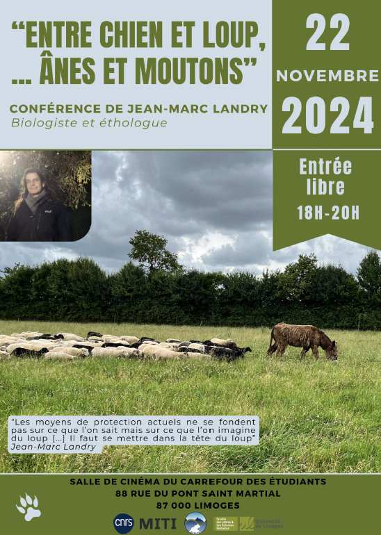 Il est invité par le programme de Recherche CNRS « Relions-Nous » porté par Dominique Taurisson-Mouret (GEOLAB, FLSH Limoges) et Anne Blondeau Da Silva (E2Lim, FST Limoges). L’objectif de ce programme est d’analyser des systèmes pastoraux extensifs et de comprendre comment les relations inter et intra espèces fonctionnent dans et autour d’un troupeau de moutons, et en quoi ils assurent la résilience et l’intégrité du tout. Et plus concrètement, comment la restauration de liens avec et entre les animaux dits auxiliaires et les prédateurs pourrait favoriser des gestions sobres et mieux ajustées, considérant tout particulièrement l’âne pour sa capacité à se lier au troupeau mais aussi à le protéger dans certaines conditions.