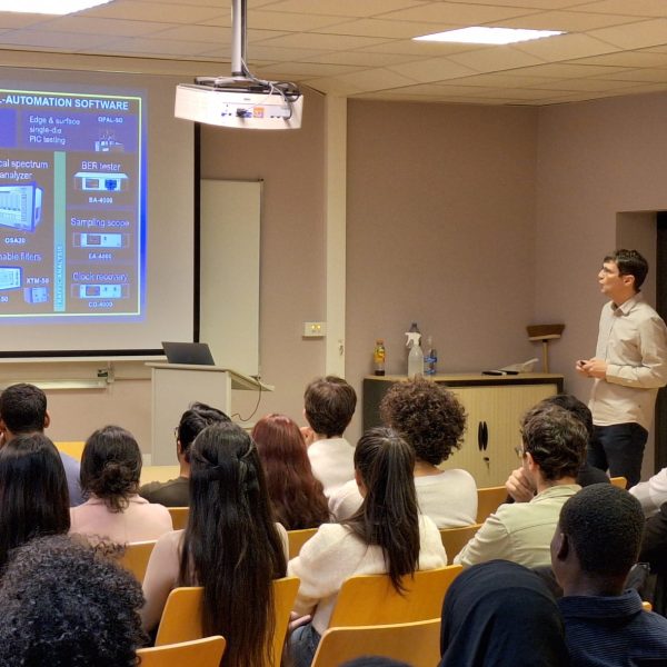 Nos étudiants EUR et EMIMEP ont eu la chance de découvrir le parcours pro de Mr. Couny mais également EXFO. La journée s’est terminée par un petit cours sur le test de la technologie en explosion de croissance : la photonique intégrée.