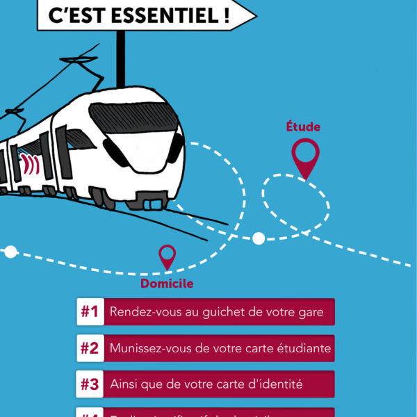 Pour vos retours gratuits en TER, vous pouvez bénéficier des billets jeunes solidaires ! C’est pour les étudiants du 1er avril au 6 juillet 2021, du lundi au vendredi !