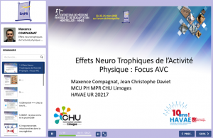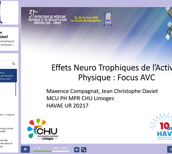 Vous y trouverez notamment la présentation de Maxence Compagnat sur les effets neurotrophiques de l’Activité Physique chez les patients AVC :