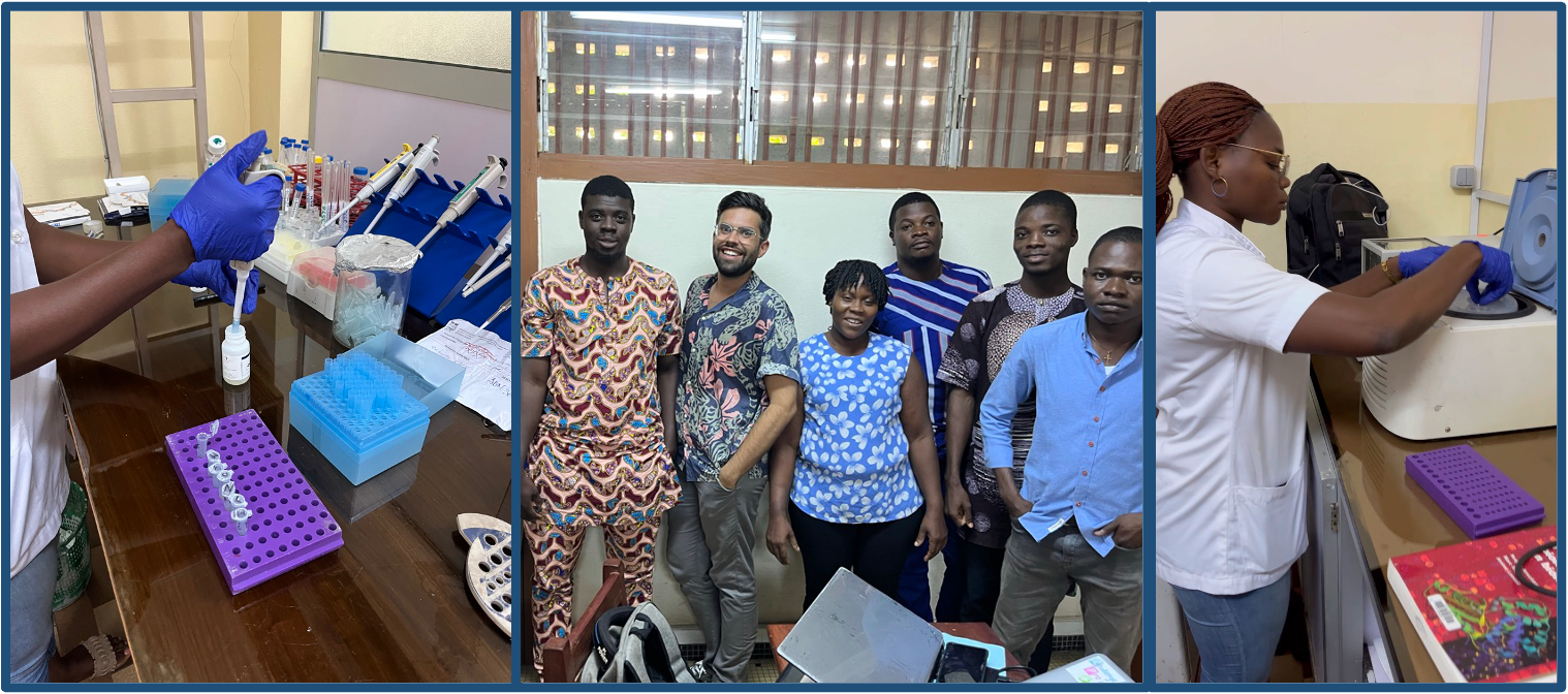 Après validation de notre projet ABCgen par le ComitĂ© National d’Éthique pour la Recherche en SantĂ© (CNERS) en dĂ©cembre 2021 (N°007-2021/UAC/CERSS/P/SG/R/SA), nous avons obtenu des pièces tumorales de cancer du sein incluses en paraffine (n=90) avec leurs donnĂ©es cliniques et histologiques : 30 blocs du Gabon, 30 du BĂ©nin et 20 du Togo. Cette Ă©tude pilote que nous allons rĂ©aliser Ă  Limoges est primordiale puisqu’elle constitue la validation de la qualitĂ© de l’ADN extrait Ă  partir des tissus inclus dans chacun de ces pays. Le caractère original de projet ABCgen repose sur l’accès de cohortes de patientes atteintes de cancer du sein avec une surreprĂ©sentation de « triple nĂ©gatif » grâce Ă  une collaboration de longue date avec nos partenaires africains. Notre projet est innovant car il reprĂ©sente la première analyse gĂ©nĂ©tique du cancer du sein dans ces 3 pays.