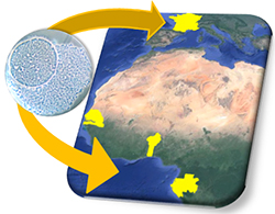 La diversitĂ© gĂ©nĂ©tique du toxoplasme en Asie et en Afrique demeure très peu explorĂ©e. Cependant le peu de donnĂ©es disponibles sur cette parasitose en Afrique de l’Ouest et Centrale suggère une prĂ©valence humaine et animale Ă©levĂ©e et une sĂ©vĂ©ritĂ© inhabituelle de l’infection toxoplasmique chez l’homme. Des Ă©tudes montrent une relation entre le gĂ©notype infectant et les manifestations cliniques, en particulier en AmĂ©rique du Sud. Dans un monde globalisĂ©, comprendre comment la diversitĂ© gĂ©nĂ©tique du pathogène se structure et Ă©volue s’impose comme une thĂ©matique Ă©mergente dans l’étude de l’épidĂ©miologie de la toxoplasmose. Le rĂ´le de facteurs anthropiques dans l’évolution de cette diversitĂ© a Ă©tĂ© montrĂ© dans le cadre de travaux de recherche prĂ©liminaires de l’équipe. Une Ă©tude menĂ©e en Guyane française montre que l’anthropisation d’un milieu aboutit Ă  une modification de la diversitĂ© gĂ©nĂ©tique locale du toxoplasme. Elle met en Ă©vidence la possibilitĂ© d’introgressions de souches sauvages (plus virulentes pour l’homme) dans l’environnement anthropisĂ©, entrainant des risques potentiels en santĂ© humaine.