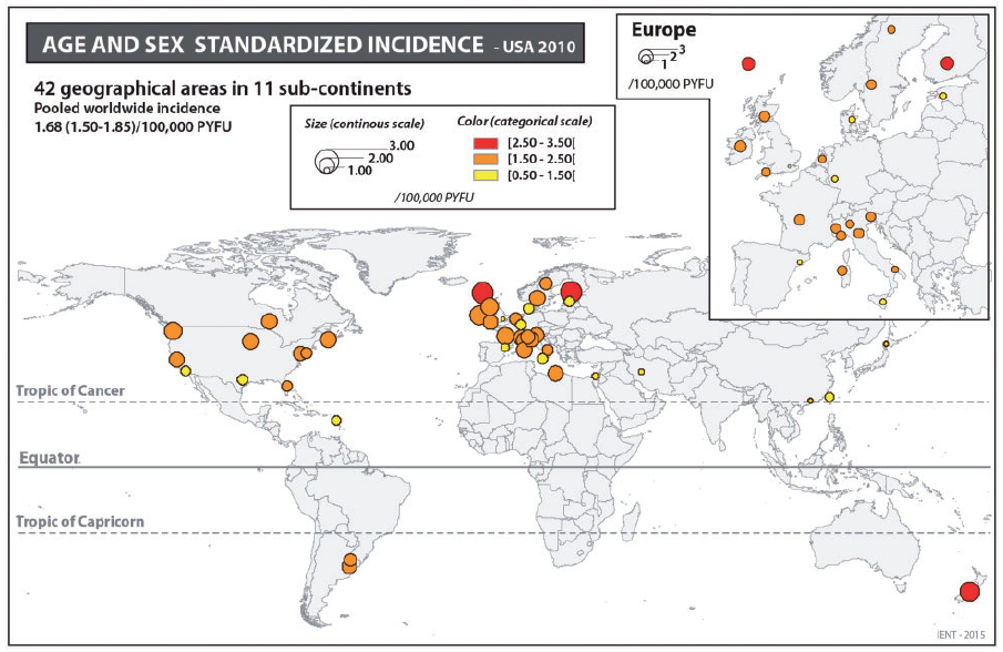 La sclérose latérale amyotrophique (SLA) est une maladie neurodégénérative rare, grave et handicapante qui est invariablement mortelle. De ce fait, la charge individuelle, économique et sociétale liée à cette pathologie est très importante. De récents travaux suggèrent que la survenue de la SLA (incidence) varie selon les populations humaines, notamment entre populations Européennes d’une part et populations Hispaniques, Asiatiques et Africaines d’autre part. Le phénotype pourrait également varier entre les populations. Notre unité a réalisé plusieurs publications pour décrire les indicateurs épidémiologiques et les caractéristiques cliniques de la SLA au niveau mondial afin de mieux comprendre l’hétérogénéité de la maladie au travers des sous-continents et des populations. En parallèle, nos travaux fournis des données originales et fiables pour améliorer nos connaissances sur la SLA en Afrique et en Amérique latine. Une meilleure compréhension des facteurs impliqués dans la survenue de la SLA peut déterminer des innovations importantes dans le cadre des approches thérapeutiques de cette pathologie.