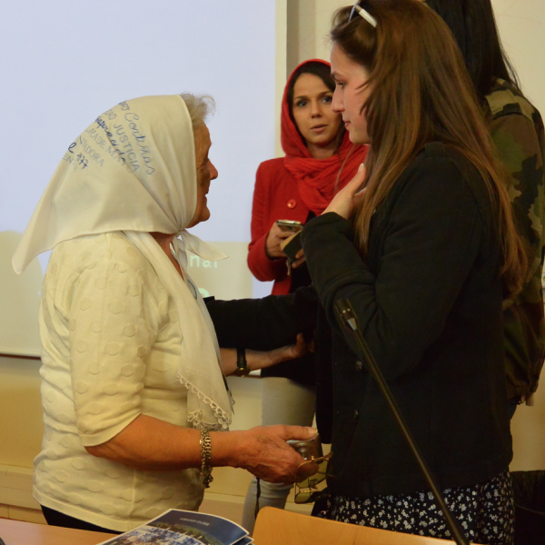 « En Argentine, on a vécu tous ces crimes. Ce sont des politiques, des méthodologies mises en place dans d’autres pays. Les Mères de la Place de Mai ligne fondatrice sont rattachées à une fédération de victimes, prisonniers, ex-détenus, de 16 pays où ces crimes ont été mis en place. Les disparus en Argentine étaient tous de jeunes avocats, médecins ou ouvriers, qui voulaient construire un monde meilleur en s’opposant au modèle américain. Toutefois, se sont des crimes qui n’ont pas eu lieu qu’en Argentine. En effet, la persécution de ces jeunes gens était favorisée par l’Opération Condor, un plan qui réunissait toutes les dictatures du Cône Sud. Si un militant cherchait à s’enfuir, il ne le pouvait pas car les pays collaboraient entre eux et il finissait par être arrêté dans l’un ou l’autre de ces Etats. »