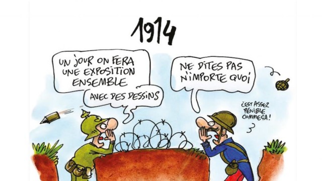 En l’espace d’un siècle, jalonné de conflits qui se sont inexorablement succédés sur la planète, des dessinateurs de presse, de toutes nationalités, ont croqué la guerre au cours de leur carrière. L’exposition permet une mise en parallèle de leur travail et l’instauration d’un dialogue à travers les époques, ce qui permet d’engager, de façon ludique, une réflexion sur la Grande Guerre, mais aussi sur les guerres.