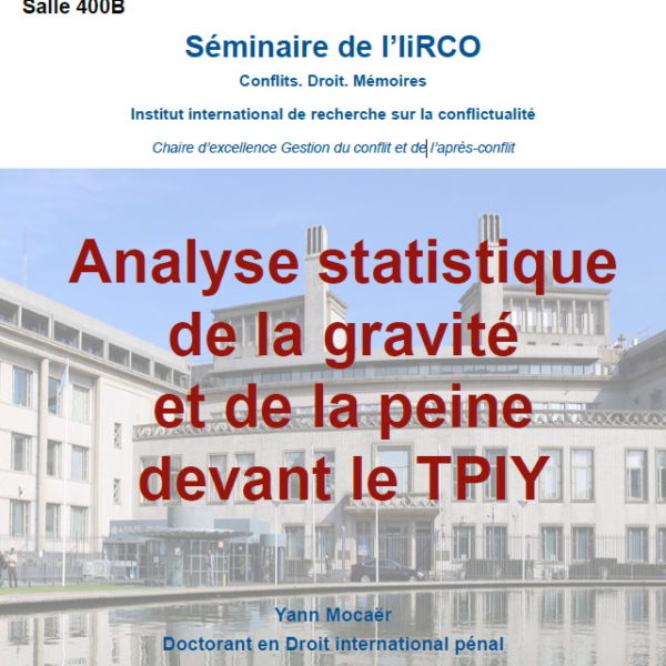 Catégories : Activités / Activités de l'IiRCO / Conférence SÉMINAIRE DE L’IIRCO- ANALYSE STATISTIQUE DE LA GRAVITE ET DE LA PEINE DEVANT LE TPIY SÉMINAIRE DE L’IIRCO- ANALYSE STATISTIQUE DE LA GRAVITE ET DE LA PEINE DEVANT LE TPIY 33 rue François Mitterrand BP 23204 87032 Limoges - France Tél. +33 (5) 05 55 14 91 00 université ouverte source de réussites