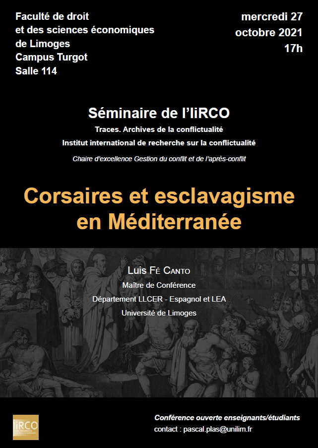 Catégories : Activités / Activités de l'IiRCO / Conférence SÉMINAIRE DE L’IIRCO- CORSAIRES ET ESCLAVAGISME EN MEDITERRANEE SÉMINAIRE DE L’IIRCO- CORSAIRES ET ESCLAVAGISME EN MEDITERRANEE 33 rue François Mitterrand BP 23204 87032 Limoges - France Tél. +33 (5) 05 55 14 91 00 université ouverte source de réussites