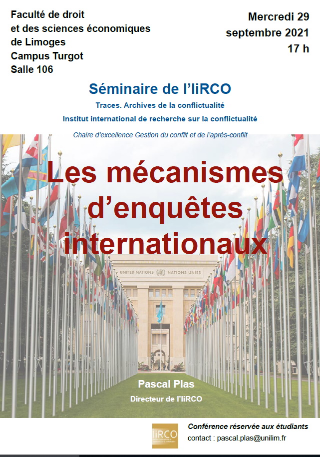 Catégories : Activités / Activités de l'IiRCO / Conférence SÉMINAIRE DE L’IIRCO- LES MÉCANISMES D’ENQUÊTES INTERNATIONAUX SÉMINAIRE DE L’IIRCO- LES MÉCANISMES D’ENQUÊTES INTERNATIONAUX 33 rue François Mitterrand BP 23204 87032 Limoges - France Tél. +33 (5) 05 55 14 91 00 université ouverte source de réussites