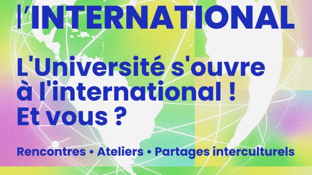Ouverture du « village de l’international » et café de bienvenue : stands et activités proposés par les services du Pôle International et les associations étudiantes de 14h à 18h.