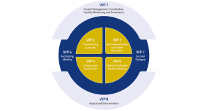 En accord avec les recommandations de l’European University Association sur les modèles de gouvernance des alliances universitaires européennes, le réseau EUPeace a choisi une structure de gouvernance qui s’engage dans un processus flexible, évoluant au fil du temps, en particulier en gardant à l’esprit la durabilité à long terme des projets lancés au sein du réseau EUPeace.