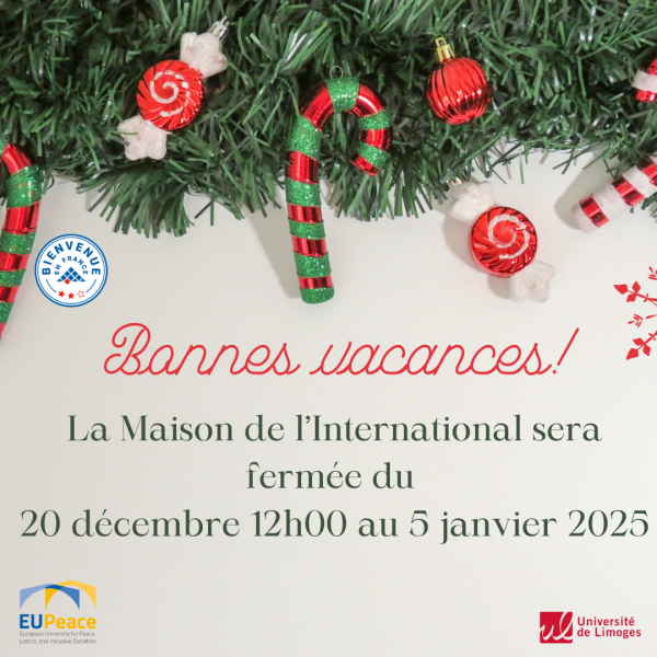 Catégories : FERMETURE DE LA MAISON DE L’INTERNATIONAL Détails Début: 21 décembre 2024 Fin: 5 janvier 2025 Présentation