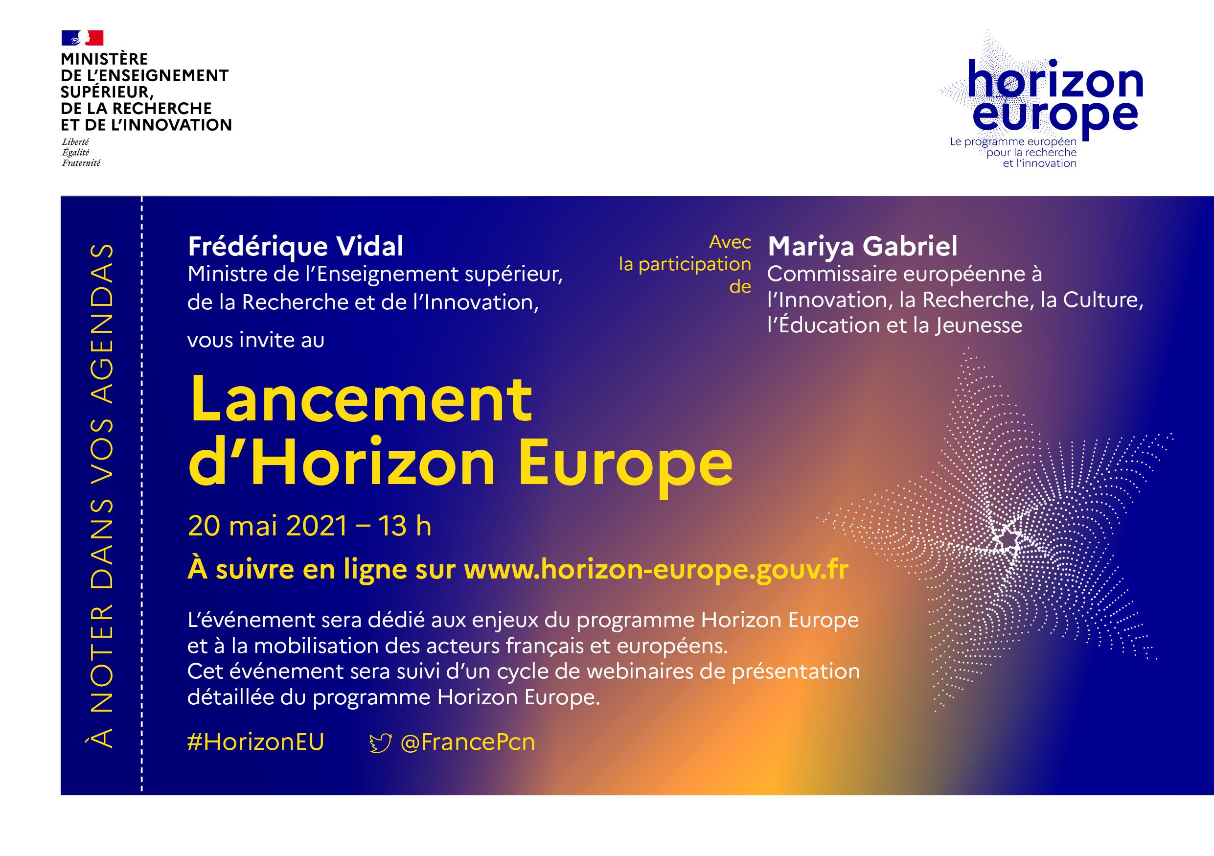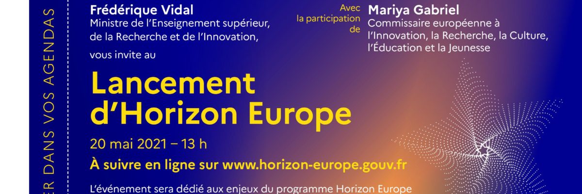 Catégories : Colloques - Congrès / International / Recherche / Réunion d'information Lancement HORIZON EUROPE Détails Début: 20 mai 2021, 13 h 00 min Catégories: Colloques - Congrès, International, Recherche, Réunion d'information Présentation Horizon Europe est le programme-cadre de l’Union européenne pour la recherche et l’innovation pour la période allant de 2021 à 2027. Horizon Europe prend ainsi la suite du programme Horizon 2020, qui se termine à la fin de l’année 2020.