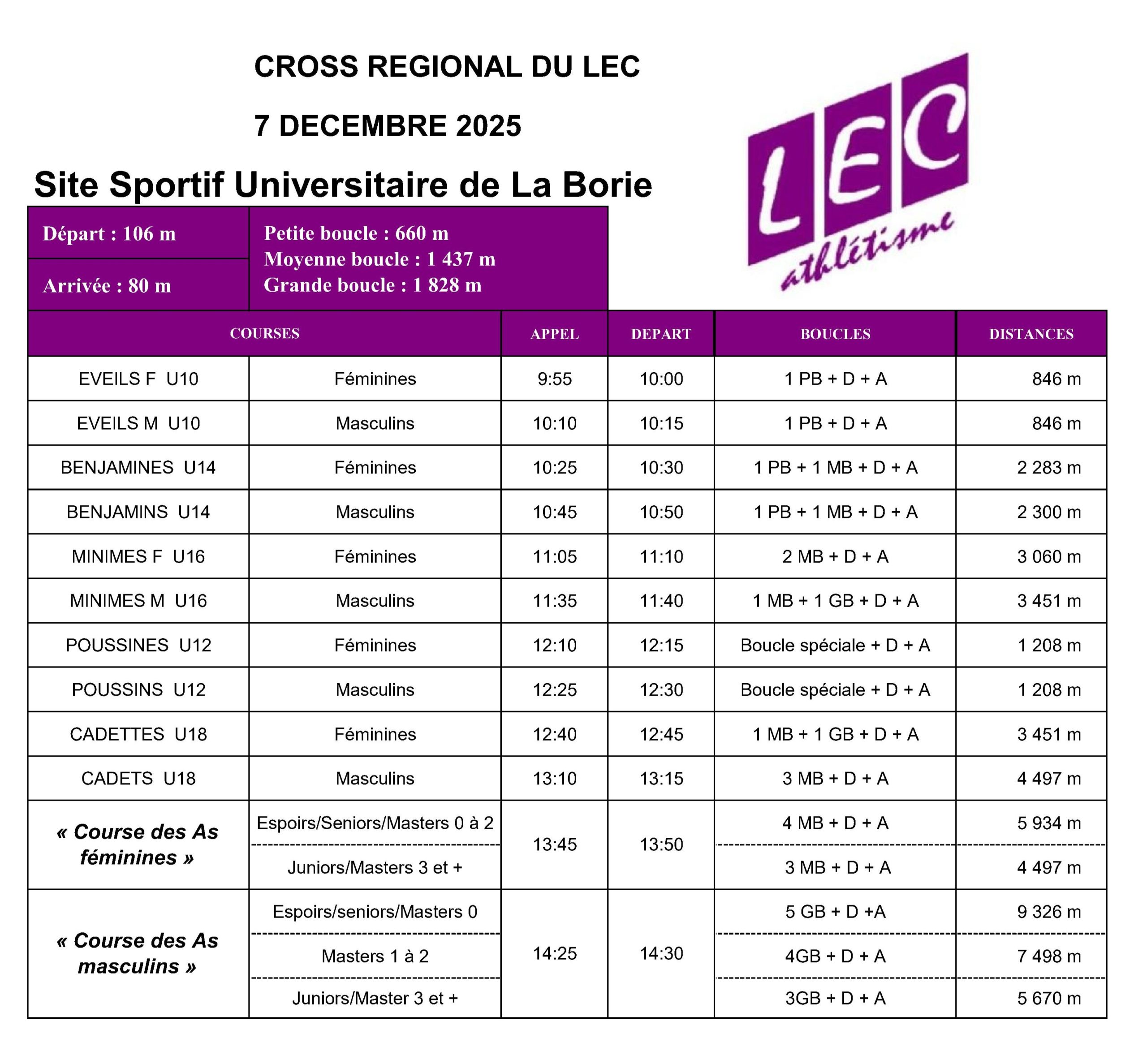 Le Cross National du Limoges Étudiant Club promet d’être une journée mémorable, où l’esprit sportif et la camaraderie seront célébrés sous le soleil de notre magnifique ville. Alors, préparez vos baskets, affûtez vos esprits de compétition et rejoignez-nous pour une expérience inoubliable !