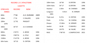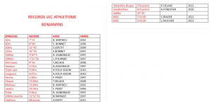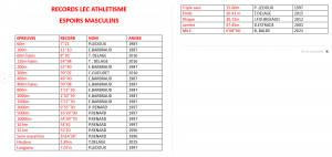 Bienvenue sur la page des records de notre club LEC Athlétisme, où les performances et les exploits de nos athlètes sont célébrés et immortalisés.