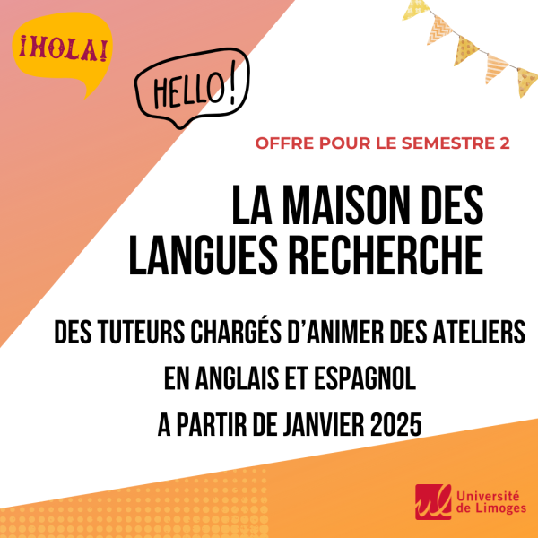 La Maison des Langues de l’Université de Limoges recrute des tuteurs à compter du second semestre 2024/2025.