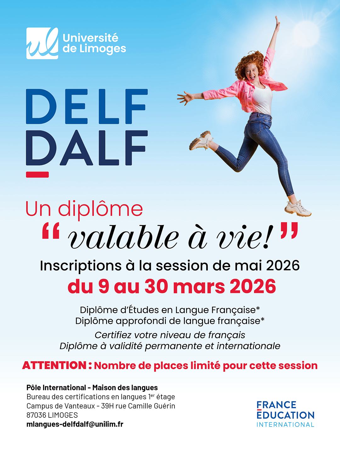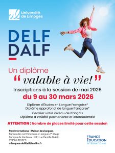 Attention : De nombreuses informations importantes relatives à la passation des examens DELF/DALF à l’Université de Limoges se trouvent dans le Contrat d’Engagement sur frais d’examen, dans la partie « Charte des examens ». Merci de bien vouloir lire ce document attentivement lors de votre inscription.