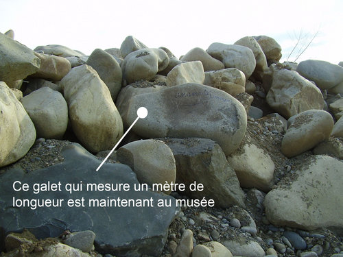 Les quantités d’eau qui ont été alors libérées ont fortement contribué au creusement des vallées que nous observons et au transport des galets de la Dordogne (de plus de 300 kilos) qui sont présentés sur la photo ci-dessous et dont deux exemplaires ont été transportés au Musée. La dernière débâcle glaciaire a eu lieu il y a 12 000 ans, c’est à dire à une époque où la grotte de Lascaux était déjà peinte et où le Puy de Dôme n’existait pas encore…