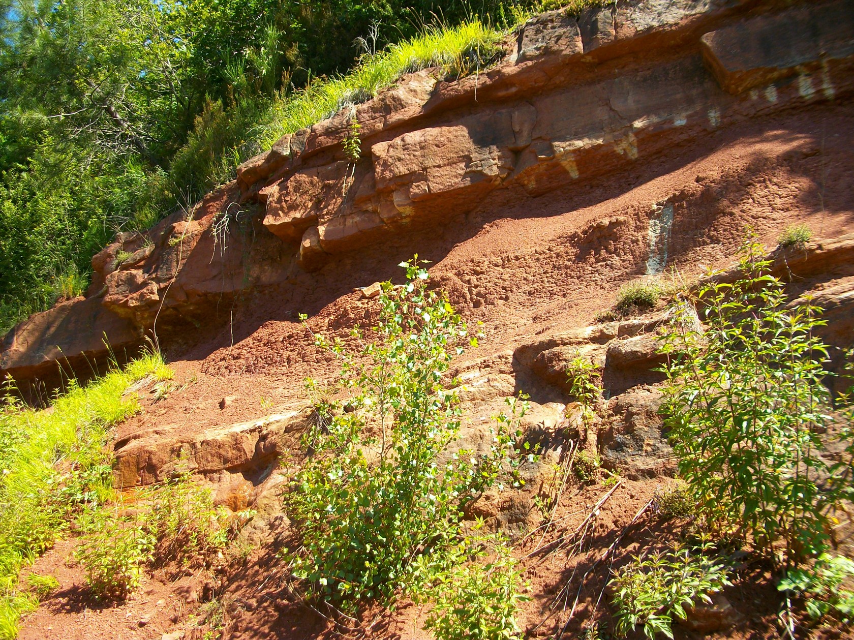 Un aspect des grès permien au sud de Brive. Les grès rouges du bassin de Brive ont été colorés de la sorte