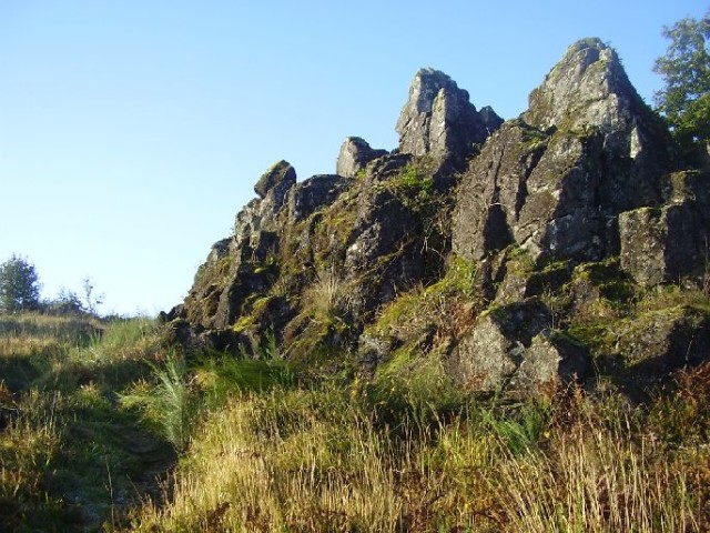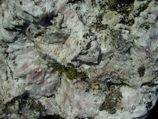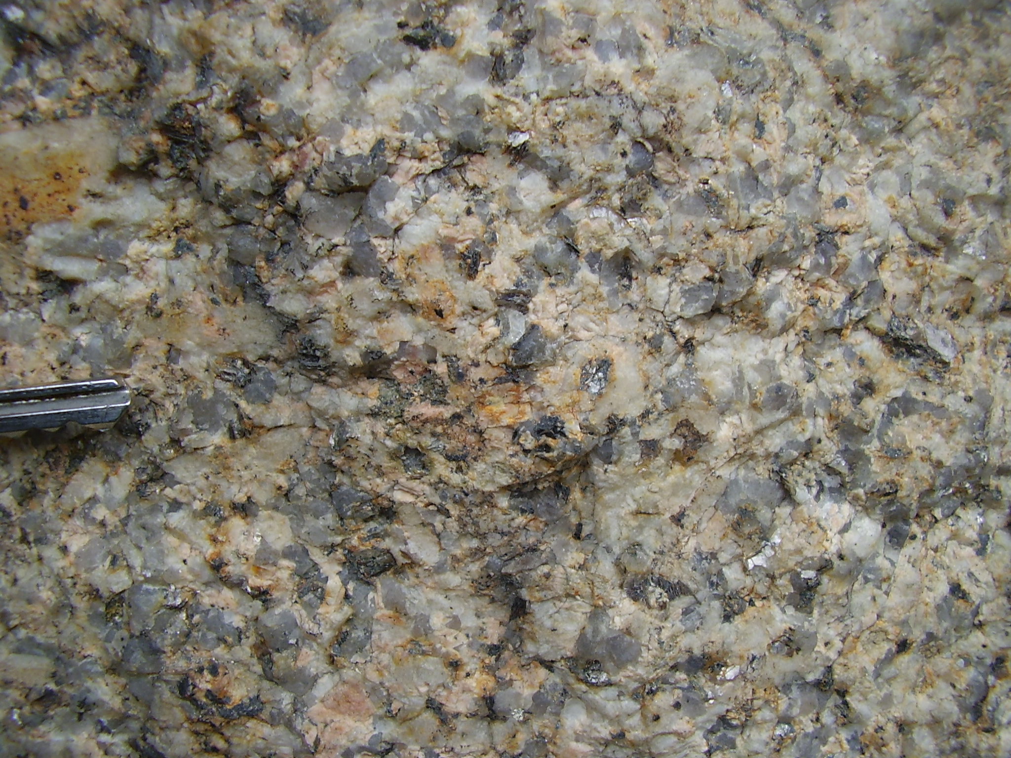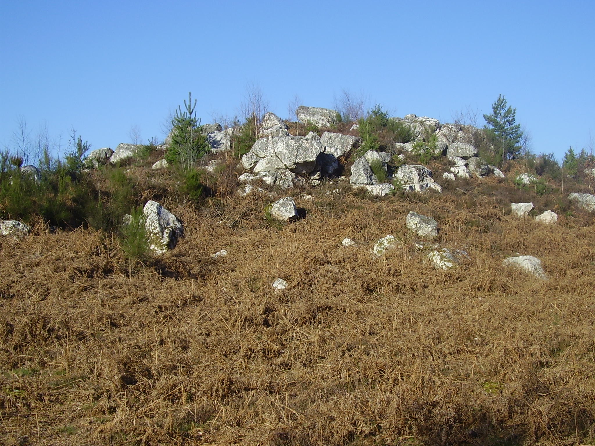 Ces blocs de roches massives qui ne sont ni des granites (pas assez réguliers) ni des roches métamorphiques (peu d’orientation dans les minéraux qu’elles contiennent) sont des migmatites (ou anatexites), autrement dit, des gneiss qui ont commencé à fondre puis qui ont recristallisé sur place.