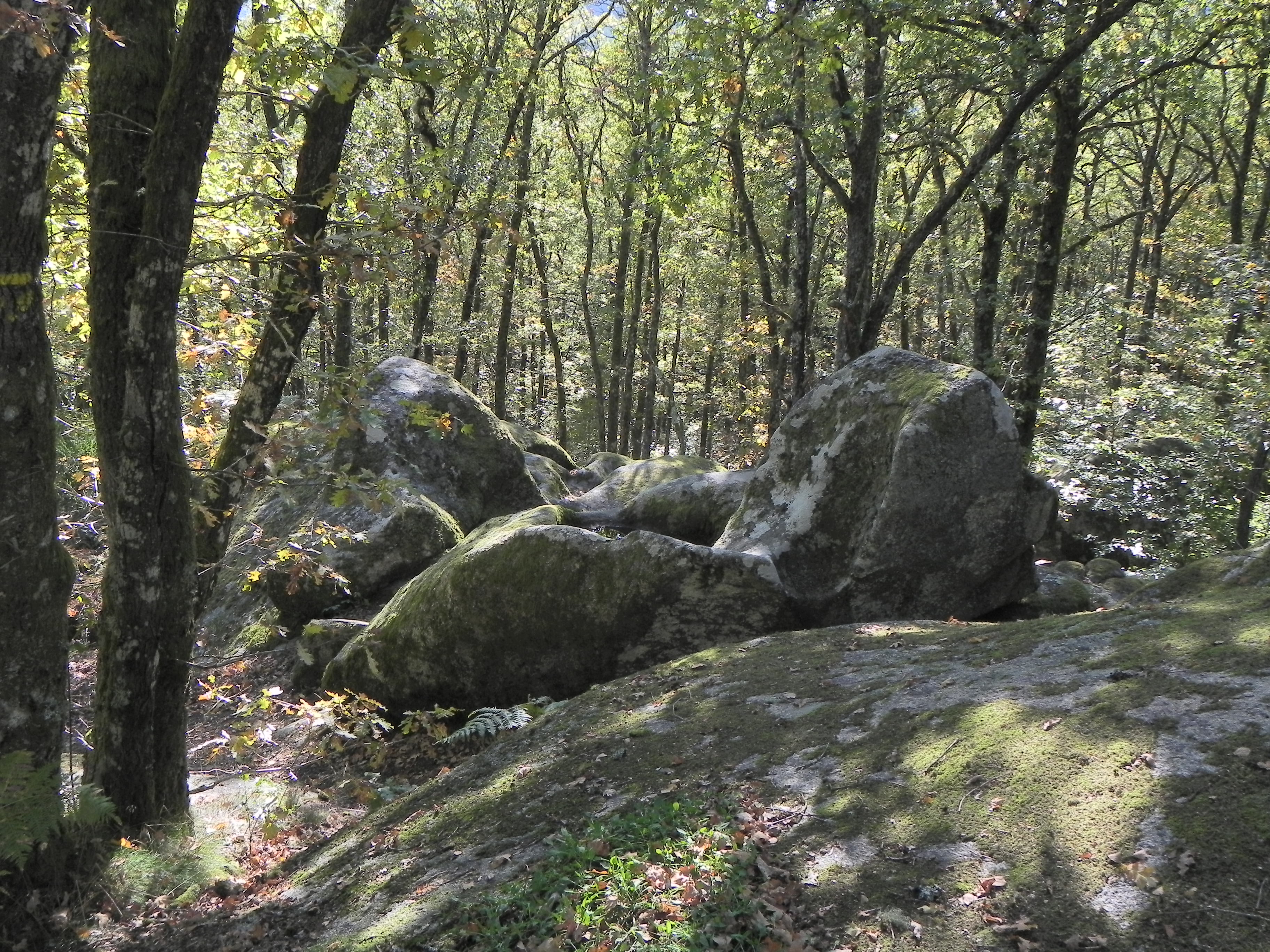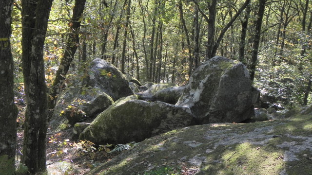 Quelques rochers granitiques dans un bois près de Pontarion (Pierre aux neuf gradins).
