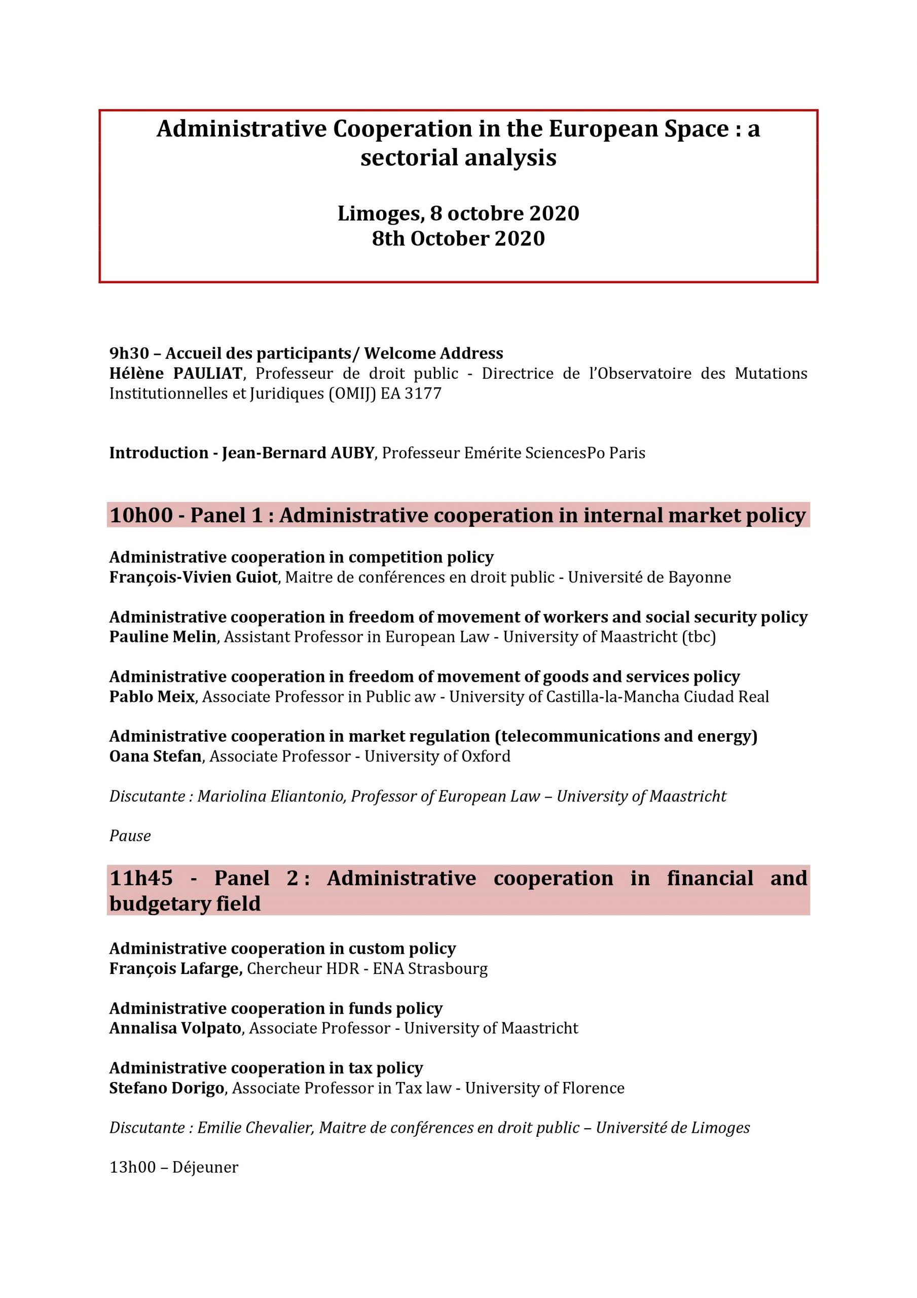 Manifestations passéesManifestations passées 2020 Manifestations passées 2020 2020 Le Monstre Février 2020, Limoges La Coopération administrative au sein de l’union européenne : une approche sectorielle – Administrative Cooperation in the European Space : a sectorial analysis 08 octobre 2020