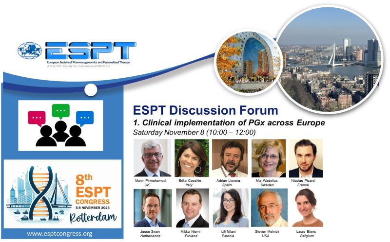 Lors du 8ème congrès de la société européenne de Pharmacogénomique et Thérapie Personnalisée (ESPTsociety) à Rotterdam, notre collègue Nicolas Picard, pharmacologue, participait à un forum de discussions sur l’implémentation clinique de la pharmacogénétique en Europe.