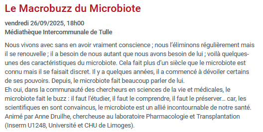 ou à Tulle pour une conférence d’Anne Druilhe, chercheuse dans l’équipe « Microbiome et Transplantation ».