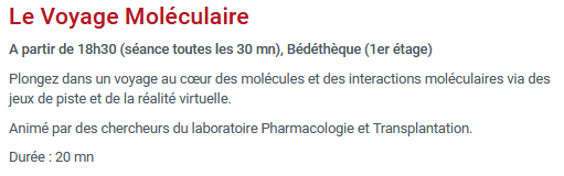 Vous pourrez les retrouver à l’atelier « Le voyage Moléculaire »