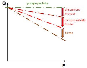 Finalement, si on veut que le débit en sortie de pompe soit constant et indépendant de ces paramètres, il faut utiliser une pompe à cylindrée variable munie d'une régulation de débit.