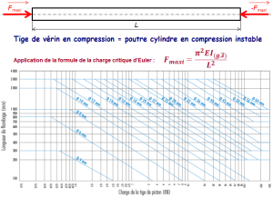 Pour dimensionner les tiges de vérin, on applique la formule de la charge critique d'Euler FC qui donne la charge maximum admissible en compression (instable) en fonction :