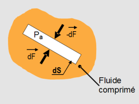 On considère un fluide comprimé contenu dans une enceinte E.