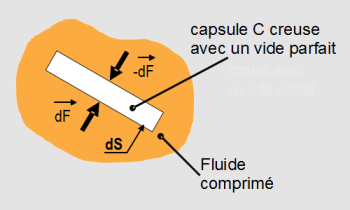 On constate alors que cette capsule est soumise sur chacune de ses faces de section dS à des efforts dF et -dF normaux à dS.