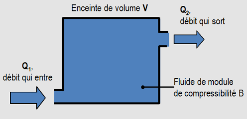 Les enceintes (corps de vérin par exemple) sont très rigides. Donc,en général, on néglige la variation de volume des enceintes devant celle du fluide.