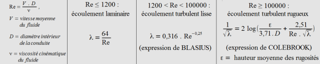Le passage du régime laminaire au régime turbulent ne se fait pas pour une vitesse particulière. Il existe un domaine où des variations de vitesse irrégulières prennent naissance : c'est un régime incertain (ou de transition). Pour dimensionner des conduites en hydraulique industrielle, on distinguera 3 types d'écoulements que l'on distingue en fonction du nombre de Reynolds, grandeur sans dimension : Re = V.D/ν. De la valeur du nombre de Reynolds, dépend le calcul du coefficient λ.[LAL01]. Pour les nombre de Reynolds compris entre 1200 et 2500, le type d'écoulement est incertain. On considérera donc l'écoulement comme étant turbulent à partir de Re = 1200. Cela entraîne une valeur de perte de charge calculée sensiblement supérieure à la réalité qui va dans le sens de la sécurité.