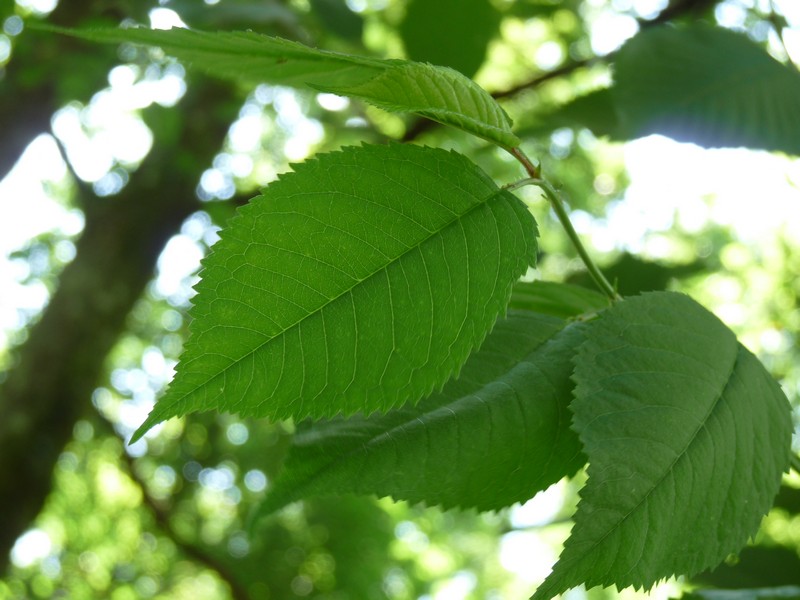 Aussi appelé cerisier sauvage, c’est une espèce que l’on trouve en forêt où il est très apprécié des sylviculteurs grâce à son bois noble. Durant le Moyen-Âge on en retrouvait beaucoup plus dans les forêts car cet arbre devait être respecté afin qu’il puisse fournir des fruits aux pauvres gens. Il est d’ailleurs à l’origine de deux de nos variétés de cerises cultivées : les bigarreaux et les guignes. Il possède des nectaires rouges : ce sont deux glandes sur le pétiole qui produisent du nectar et attirent les pollinisateurs. |