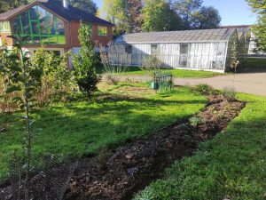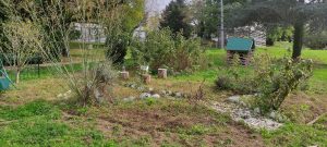 Octobre 2022 a été le début de la réhabilitation du potager. Après une phase de désherbage puis de paillage, il nous faut encore retirer les mauvaises herbes restantes avant d’y replanter des aromatiques.