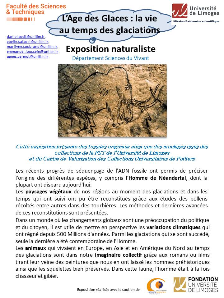 Découvrez des fossiles originaux ainsi que des moulages issus des collections de la FST de l'Université de Limoges et du Centre de Valorisation des Collections Universitaires de Poitiers