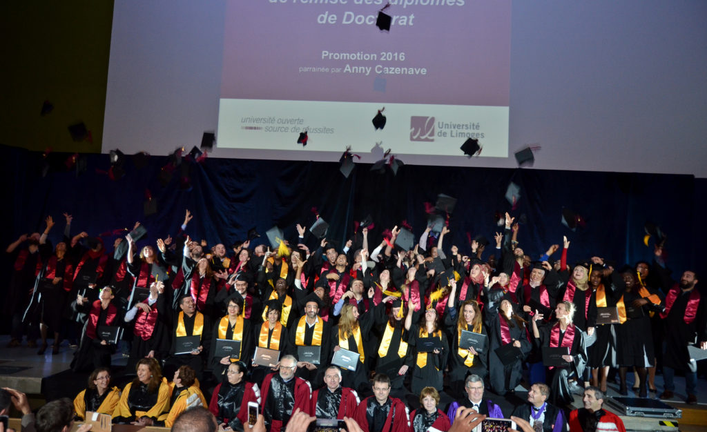 s de l’Université de Limoges étaient présents pour recevoir leur diplôme de Doctorat en présence du Président de l’université, du Recteur d’académie, des Directeurs des Écoles Doctorales et de la marraine de la promotion 2016, Mme Anny Cazenave, chercheur au Centre National d’Études Spatiales (CNES), spécialisée en géodésie et océanographie spatiale au Laboratoire d’Études en Géophysique et Océanographie Spatiales à Toulouse.