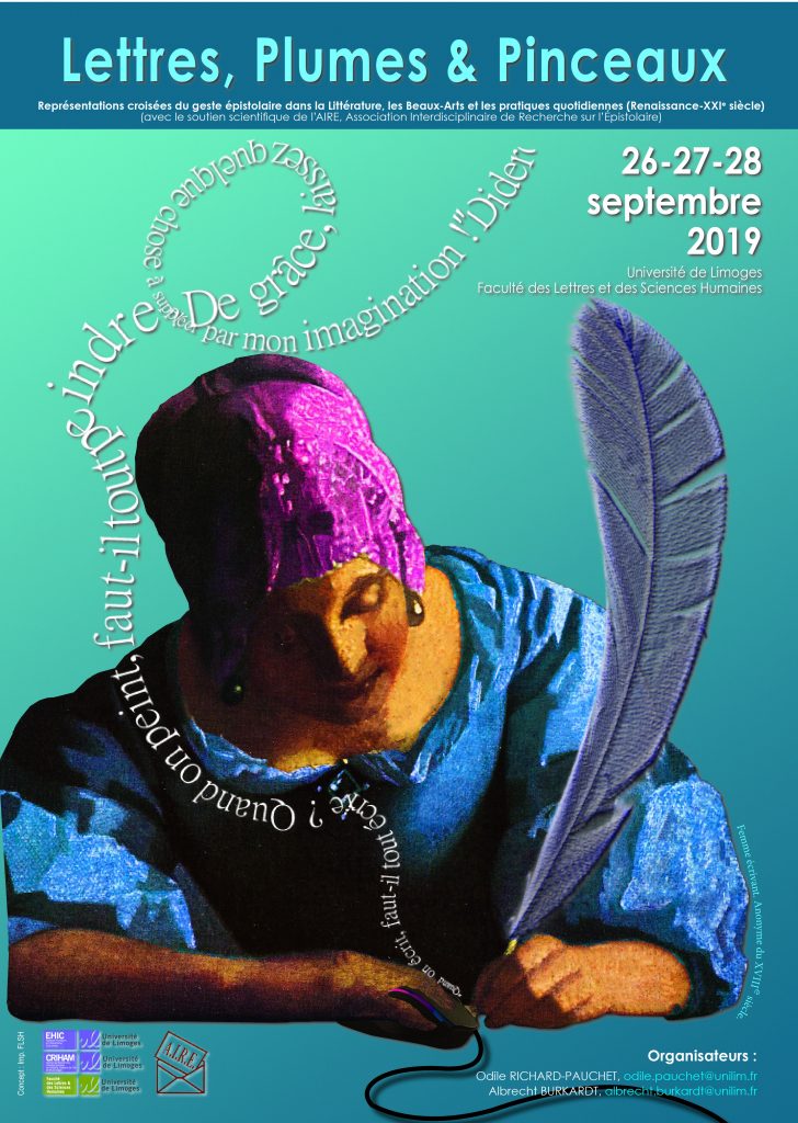 Ce colloque est organisé par les équipes CRIHAM et EHIC avec le soutien scientifique de l’AIRE (Association interdisciplinaire de Recherche sur l’Épistolaire). Il traitera des représentations croisées du geste épistolaire dans la Littérature, les Beaux-Arts et les pratiques quotidiennes (Renaissance-XXIe siècle).