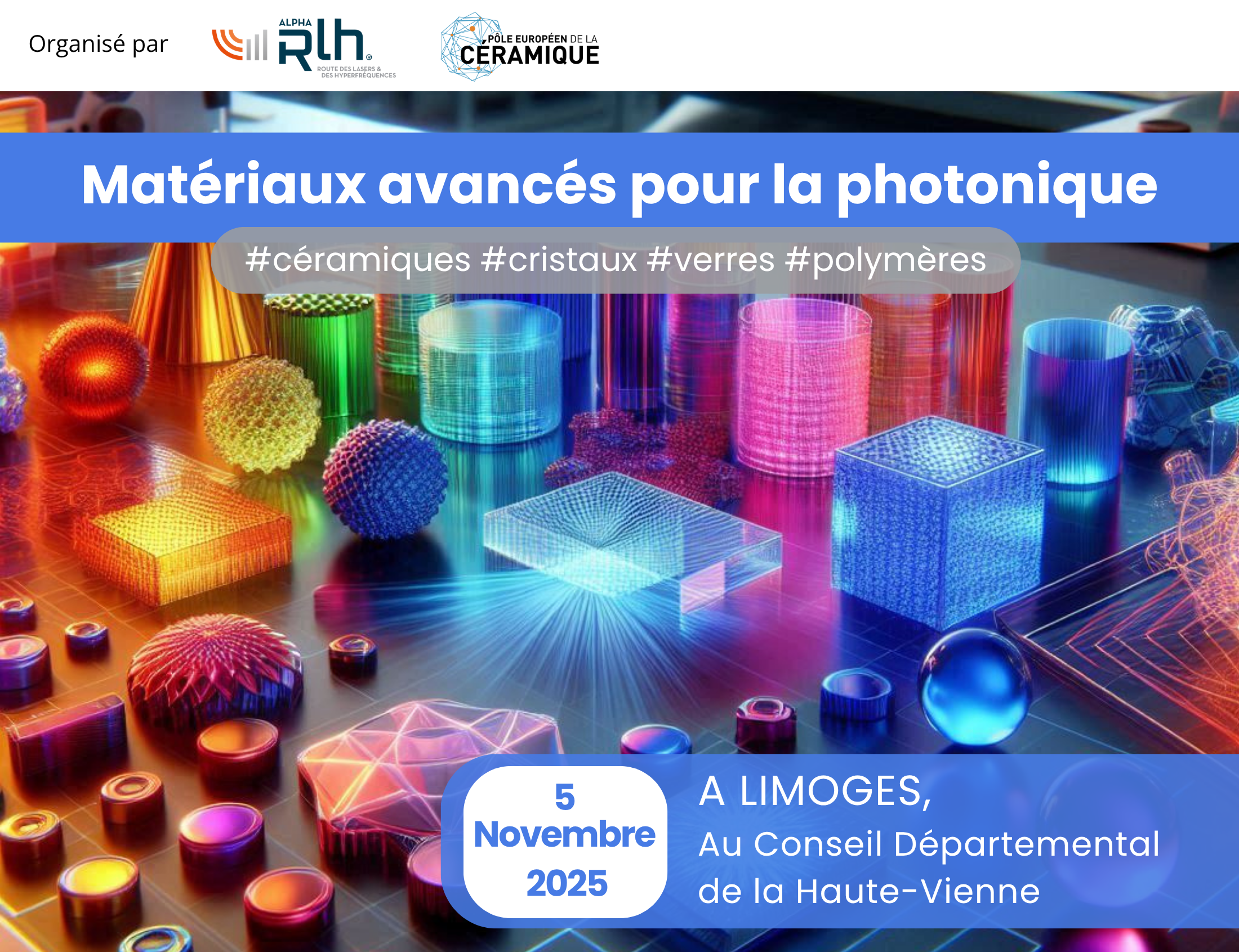 Les pôles de compétitivité ALPHA-RLH et le Pôle Européen de la Céramique organisent une journée sur les matériaux avancés pour la photonique à Limoges, le 5 novembre 2025.