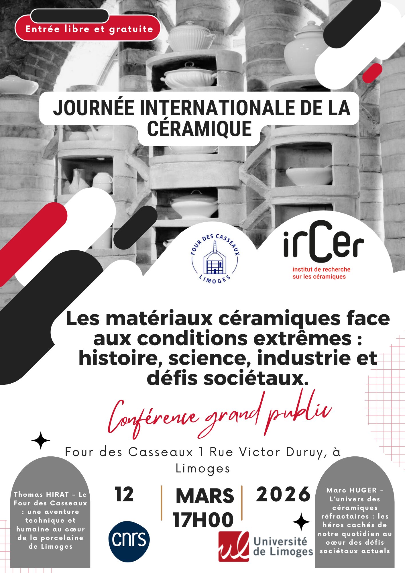 Catégories : Journée Internationale de la Céramique « Les matériaux céramiques face aux conditions extrêmes : histoire, science, industrie et défis sociétaux. » Détails Début: 12 mars 2026, 17:00 Lieu: Four des Casseaux Présentation Plan