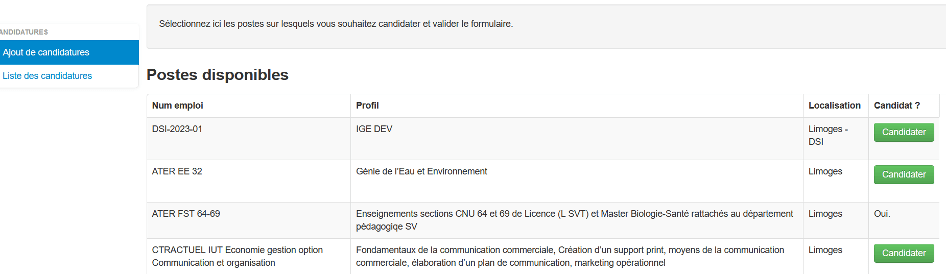 L’Université de Limoges a souhaité que les candidats, aux postes d’ATER et de contractuels du second degré, disposent d’une seule et même application pour s’inscrire et déposer leur dossier de candidature.