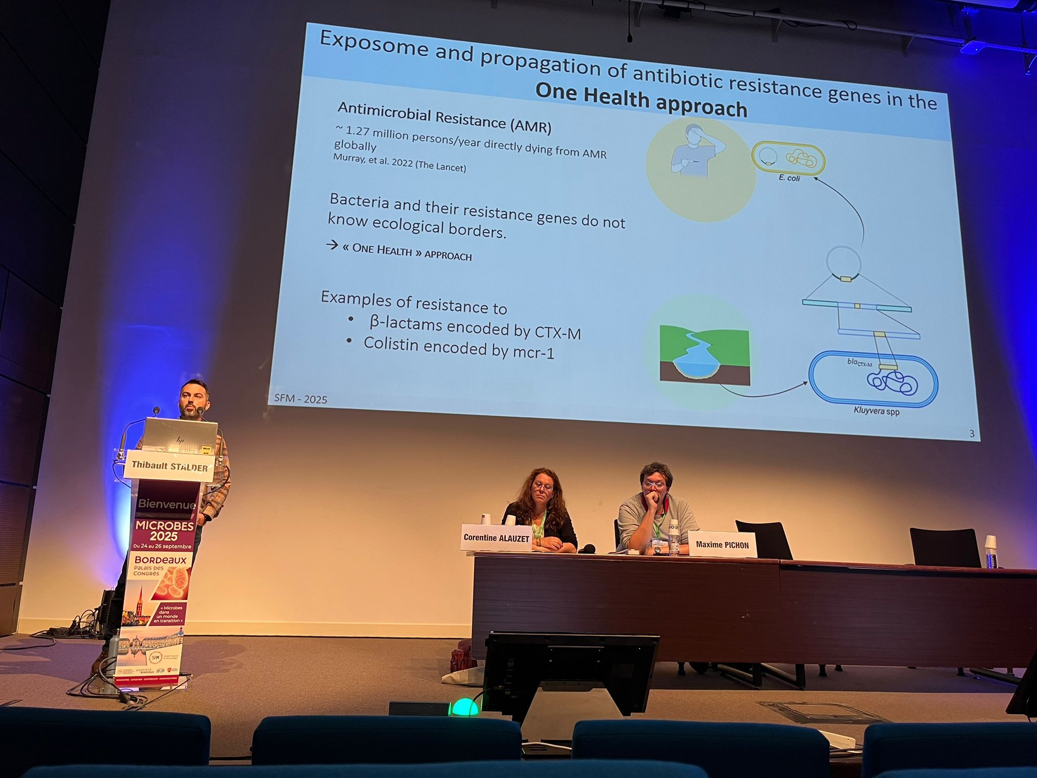 L’évènement de cette année comportait un programme scientifique dédié aux nouveaux risques et enjeux des microorganismes dans un monde en transition. Marie-Cécile Ploy, Alexia Damour, Thibault Stalder, Sylvain Meyer et Tom Benoist ont notamment fait le déplacement. Plusieurs communications orales ont été effectuées par les membres de notre laboratoire.