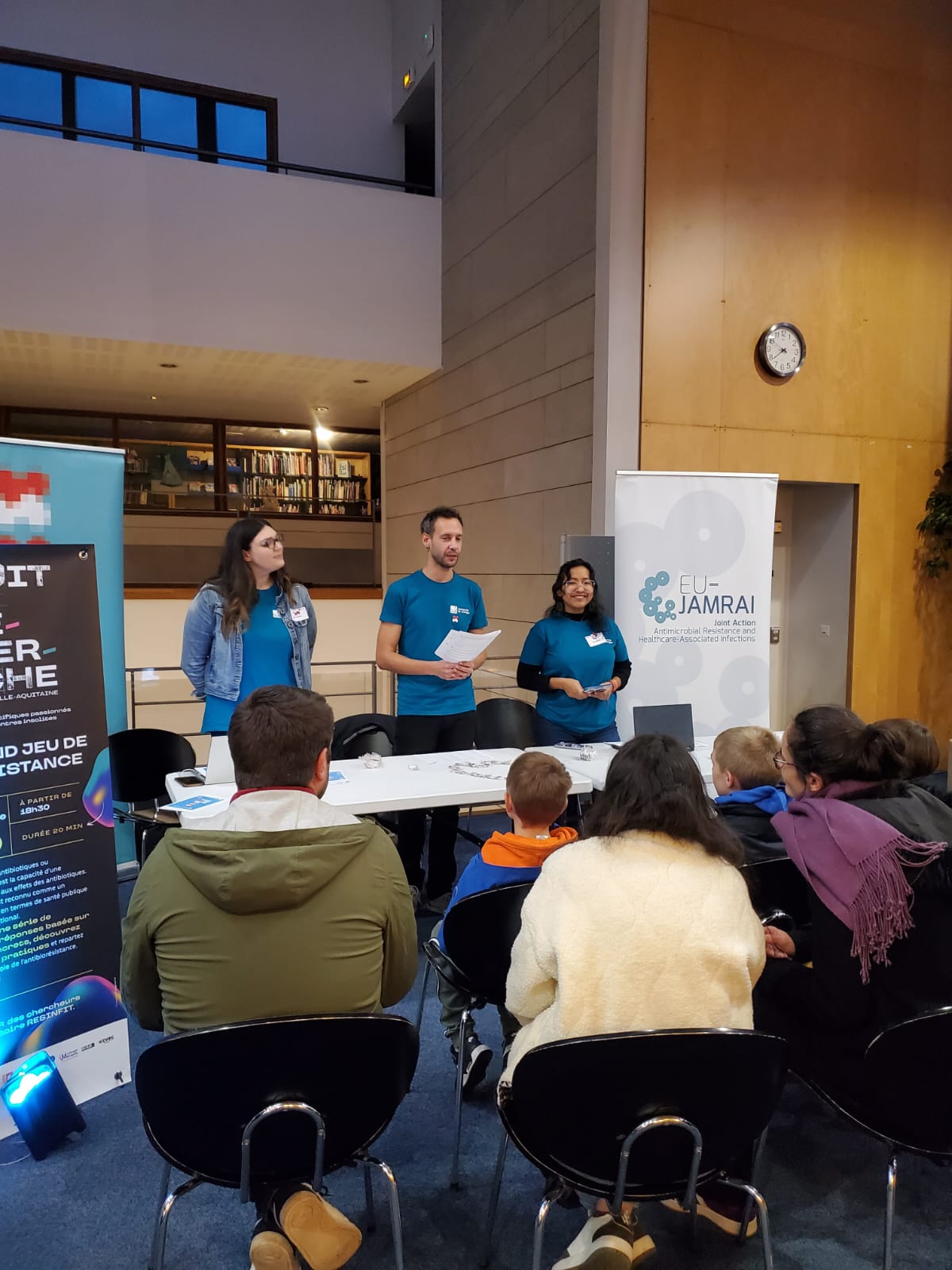 La Nuit de la Recherche est un événement unique qui plonge chaque année le grand public au cœur des sciences et de la recherche. Dans ce cadre, Karina Rojas Salvador, Anne-Laure Guenin et Geoffrey Couraud ont organisé une animation à la Bibliothèque francophone multimédia (BFM) intitulée « Le Grand Jeu de la Résistance », dédiée à la résistance aux antimicrobiens et en relation avec le projet européen EU-JAMRAI 2, coordonnée par notre UMR 1092 RESINFIT.